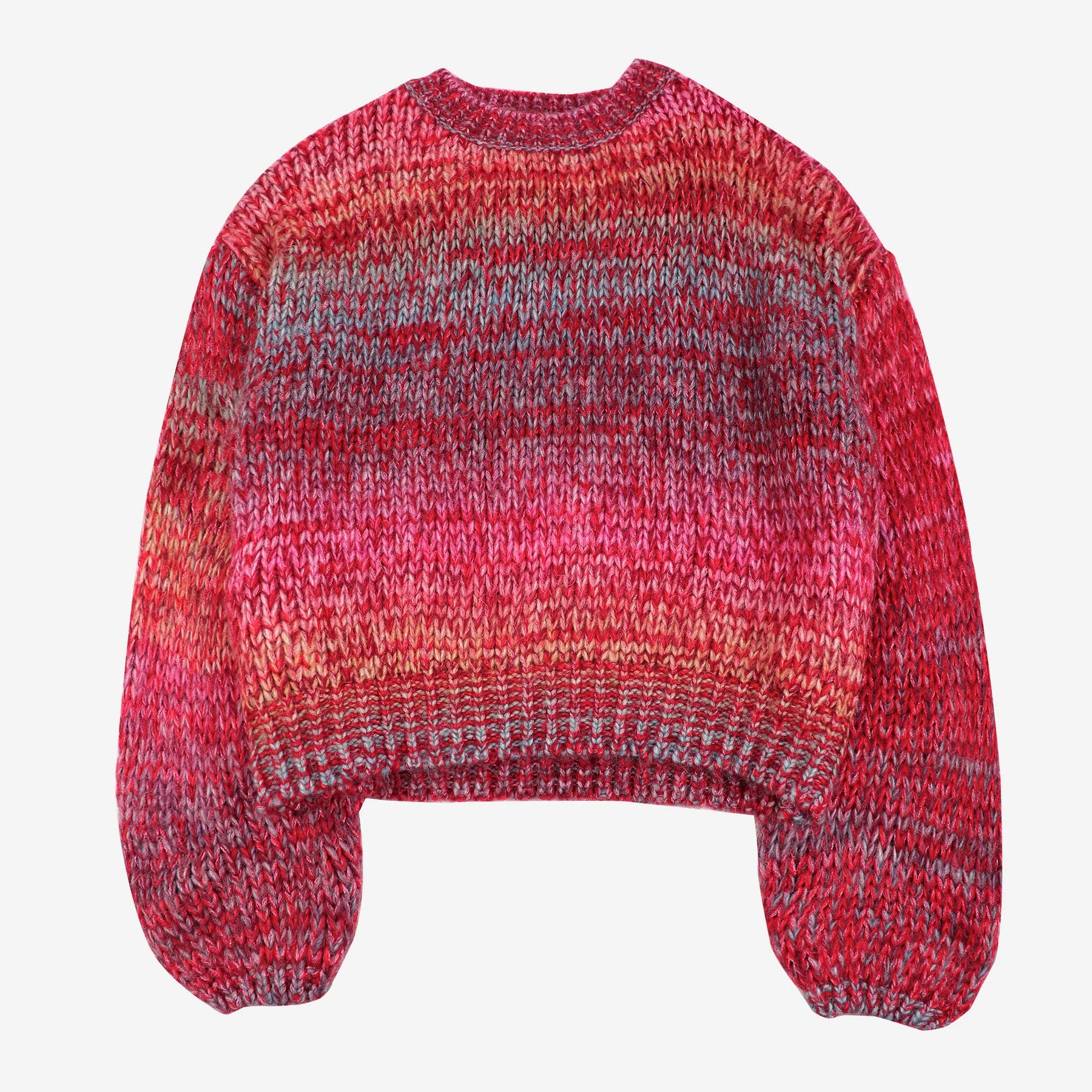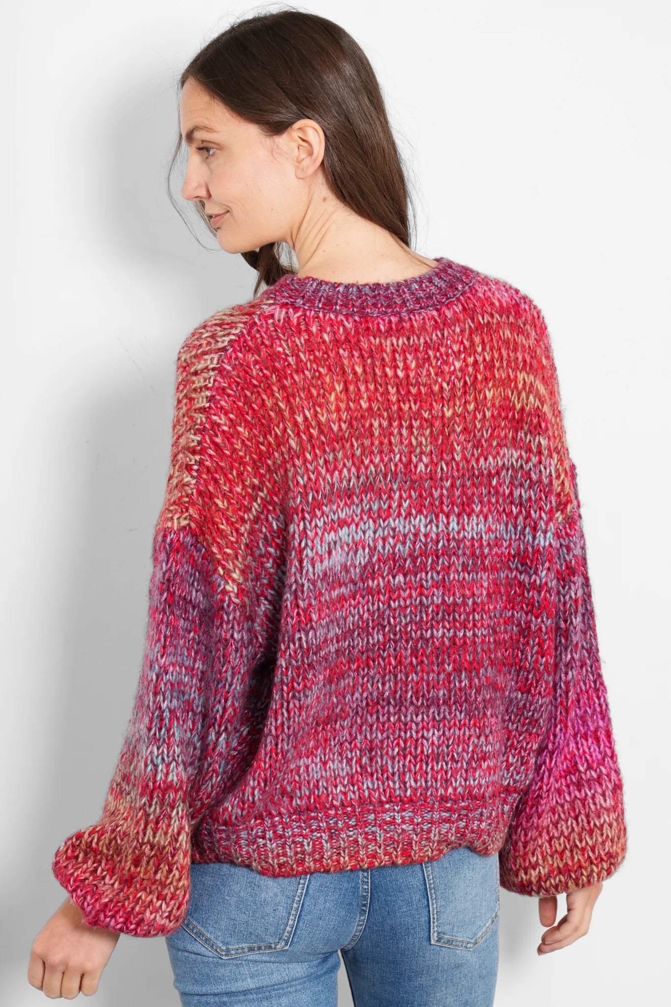 A colourful knitted jumper crafted from an Italian wool blend yarn. Featuring a subtle ombre striped pattern, a round neck and long sleeves, this piece is ideal for seasonal layering.
