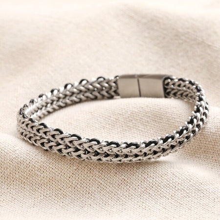 {"id":8071358316644,"title":"Men's Stainless Steel Woven Chain Bracelet","handle":"mens-stainless-steel-woven-chain-bracelet","description":"\u003cp\u003eThis stylish bracelet is the perfect accessory for those who favour stainless steel jewellery. \u003c\/p\u003e\n\u003cp\u003eFeaturing two, polished chains, woven together with black nylon cord to create a unique accessory and completed with a sliding clasp, this chunky bracelet is a must-have for anyone who favours the bold jewellery trend. \u003cbr\u003e\u003cbr\u003eLarge\/XL : inner circumference - 19.7cm\u003cbr\u003elength - 21cm\u003c\/p\u003e","published_at":"2025-05-27T11:00:59+01:00","created_at":"2025-05-27T11:00:59+01:00","vendor":"theovertongallery","type":"Bracelet","tags":["Bracelets","dad","Jewellery"],"price":3500,"price_min":3500,"price_max":3500,"available":true,"price_varies":false,"compare_at_price":null,"compare_at_price_min":0,"compare_at_price_max":0,"compare_at_price_varies":false,"variants":[{"id":45947246739556,"title":"Default Title","option1":"Default Title","option2":null,"option3":null,"sku":"","requires_shipping":true,"taxable":false,"featured_image":null,"available":true,"name":"Men's Stainless Steel Woven Chain Bracelet","public_title":null,"options":["Default Title"],"price":3500,"weight":0,"compare_at_price":null,"inventory_management":"shopify","barcode":"","requires_selling_plan":false,"selling_plan_allocations":[]}],"images":["\/\/overtongallery.co.uk\/cdn\/shop\/files\/men-s-chain-bracelet-in-silver-4x3a0926-copy-620x620.jpg?v=1748339975","\/\/overtongallery.co.uk\/cdn\/shop\/files\/men-s-chain-bracelet-in-silver-4x3a0920-copy-620x620.jpg?v=1748339992","\/\/overtongallery.co.uk\/cdn\/shop\/files\/4x3a3619-copy-620x620.jpg?v=1748339987"],"featured_image":"\/\/overtongallery.co.uk\/cdn\/shop\/files\/men-s-chain-bracelet-in-silver-4x3a0926-copy-620x620.jpg?v=1748339975","options":["Title"],"media":[{"alt":null,"id":28558857896036,"position":1,"preview_image":{"aspect_ratio":1.0,"height":620,"width":620,"src":"\/\/overtongallery.co.uk\/cdn\/shop\/files\/men-s-chain-bracelet-in-silver-4x3a0926-copy-620x620.jpg?v=1748339975"},"aspect_ratio":1.0,"height":620,"media_type":"image","src":"\/\/overtongallery.co.uk\/cdn\/shop\/files\/men-s-chain-bracelet-in-silver-4x3a0926-copy-620x620.jpg?v=1748339975","width":620},{"alt":null,"id":28558859632740,"position":2,"preview_image":{"aspect_ratio":1.0,"height":620,"width":620,"src":"\/\/overtongallery.co.uk\/cdn\/shop\/files\/men-s-chain-bracelet-in-silver-4x3a0920-copy-620x620.jpg?v=1748339992"},"aspect_ratio":1.0,"height":620,"media_type":"image","src":"\/\/overtongallery.co.uk\/cdn\/shop\/files\/men-s-chain-bracelet-in-silver-4x3a0920-copy-620x620.jpg?v=1748339992","width":620},{"alt":null,"id":28558859042916,"position":3,"preview_image":{"aspect_ratio":1.0,"height":620,"width":620,"src":"\/\/overtongallery.co.uk\/cdn\/shop\/files\/4x3a3619-copy-620x620.jpg?v=1748339987"},"aspect_ratio":1.0,"height":620,"media_type":"image","src":"\/\/overtongallery.co.uk\/cdn\/shop\/files\/4x3a3619-copy-620x620.jpg?v=1748339987","width":620}],"requires_selling_plan":false,"selling_plan_groups":[],"content":"\u003cp\u003eThis stylish bracelet is the perfect accessory for those who favour stainless steel jewellery. \u003c\/p\u003e\n\u003cp\u003eFeaturing two, polished chains, woven together with black nylon cord to create a unique accessory and completed with a sliding clasp, this chunky bracelet is a must-have for anyone who favours the bold jewellery trend. \u003cbr\u003e\u003cbr\u003eLarge\/XL : inner circumference - 19.7cm\u003cbr\u003elength - 21cm\u003c\/p\u003e"}